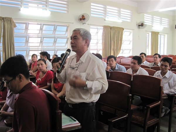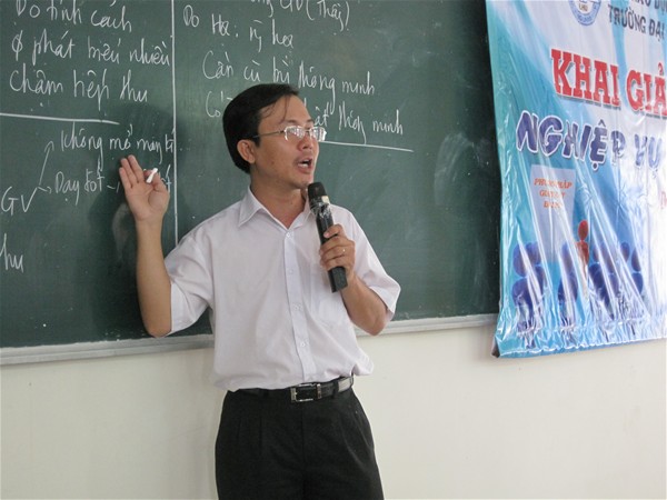 TS. Nguyễn Văn tân - Trưởng phòng NCKH-SĐH-KĐCL, đang phát biểu khai giảng Khóa học nghiệp vụ sư phạm...