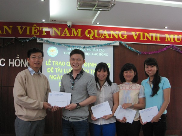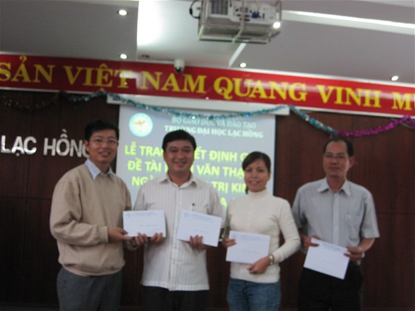 Căn cứ kết quả đánh giá của hội đồng từ buổi định hướng đề tài, vào ngày 28/12/2013, tại phòng B203 Trường đã tổ chức buổi lễ trao quyết định giao đề tài cho 24 học viên đã có kết quả đạt từ buổi định hướng. TS. Nguyễn Văn Tân - Trưởng phòng Sau đại học, kiêm Trưởng khoa Quản trị - Kinh tế quốc tế đã thay mặt Nhà trường trao quyết định giao đề tài cho các học viên nói trên.