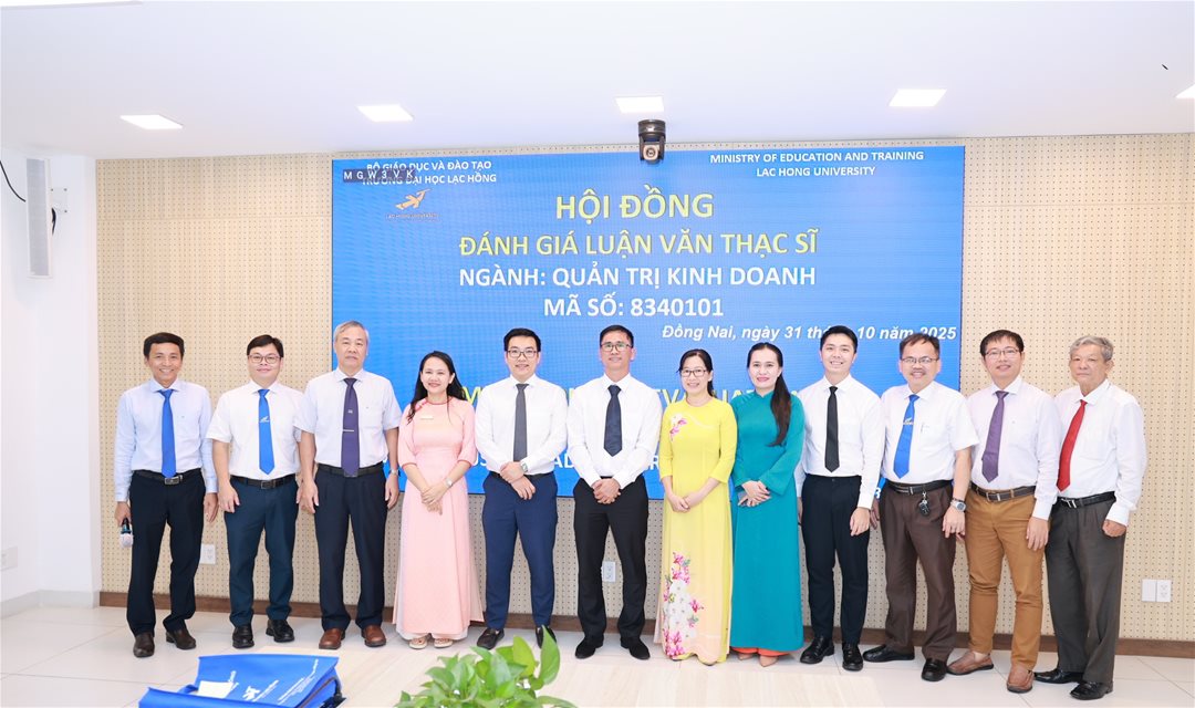Ngày 31 tháng 10 năm 2025, tại phòng họp cơ sở 1 của Trường Đại học Lạc Hồng (LHU), 06 học viên ngành Quản trị kinh doanh đã xuất sắc hoàn thành và bảo vệ luận văn thạc sĩ của mình. Buổi bảo vệ diễn ra trong không khí trang trọng và đầy tính học thuật, đánh dấu một bước ngoặt quan trọng trong hành trình học tập và nghiên cứu của các học viên.