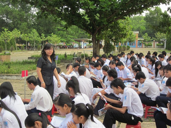 Thầy Diệp Cẩm Thu tư vấn dưới cờ tại Trường THPT Tân Bình