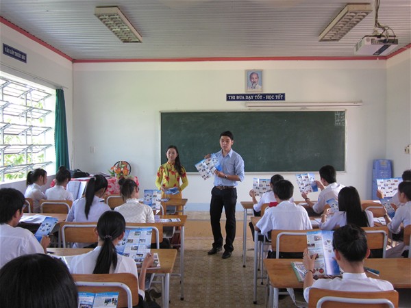 Các Thầy, Cô trong đoàn thực hiện việc tư vấn tại lớp cho các em học sinh
