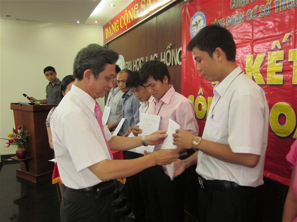 Tham dự buổi Lễ có sự hiện diện của TS. Diệp Cẩm Thu – Chủ tịch Công đoàn, TS. Nguyễn Văn Nam – Phó Chủ tịch Công đoàn, quý Thầy Cô đại diện cho BCH Công đoàn ,Tổ trưởng Công đoàn và 33 công đoàn viên được kết nạp đợt 01 – năm 2013.
