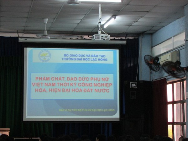 Trưởng ban Vì sự tiến bộ Phụ nữ trường ĐH Lạc Hồng giới thiệu chuyên đề.