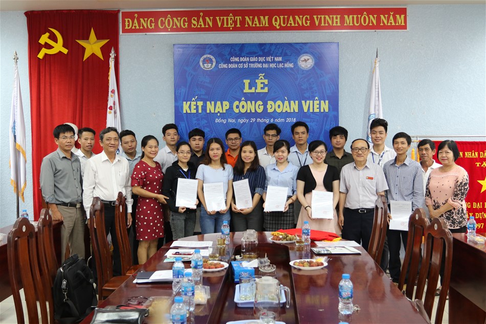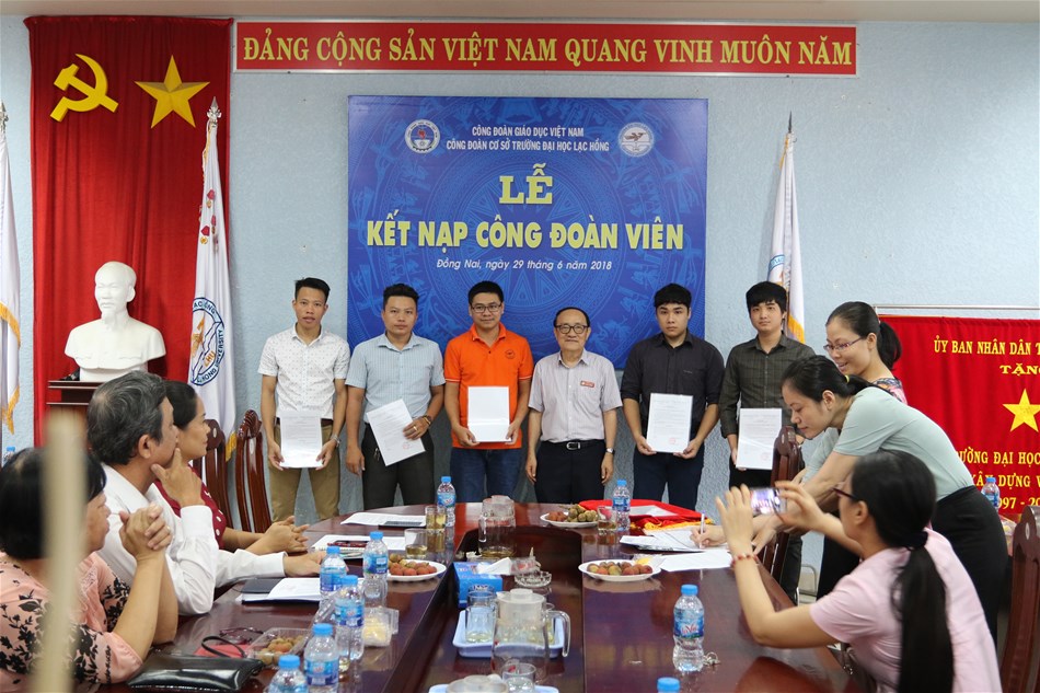 Đại diện Ban Chấp hành Công đoàn trường ĐH Lạc Hồng, Thầy Diệp Cẩm Thu đã chúc mừng và trao Quyết định kết nạp số 34/QĐ-CĐ ngày 23/6/2018 đến toàn thể Công đoàn viên mới. Cô Lê Thị Thu Hương thay mặt BTV Công đoàn Cơ sở đã chia sẻ để các Công đoàn viên mới hiểu rõ hơn về cơ cấu tổ chức, về chức năng nhiệm vụ, quá trình xây dựng và phát triển cũng như những kết quả tốt đẹp mà Công đoàn Cơ sở Nhà trường đã đạt được kể từ khi thành lập đến nay. Cô bày tỏ hy vọng các Công đoàn viên mới với trình độ, sự quyết tâm sẽ tạo ra năng lực, lan tỏa sức trẻ giúp đẩy mạnh các hoạt động Công đoàn trong thời gian tới. Qua phần chia sẻ thêm của Thầy Nguyễn Văn Nam (Phó Chủ tịch Công đoàn), bên cạnh những trách nhiệm và nghĩa vụ mà CĐV phải thực hiện thì Thầy cũng giúp Công đoàn viên mới hiểu thêm về những quyền lợi mà người Đoàn viên Công đoàn được hưởng khi gia nhập tổ chức Công đoàn Nhà trường và những quyền lợi trong quy định của Điều lệ Công đoàn Việt Nam.
