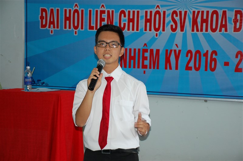 Đ/c Huỳnh Thúc Hiếu - Phó Chủ tịch Hội SV trường phát biểu tại đại hội