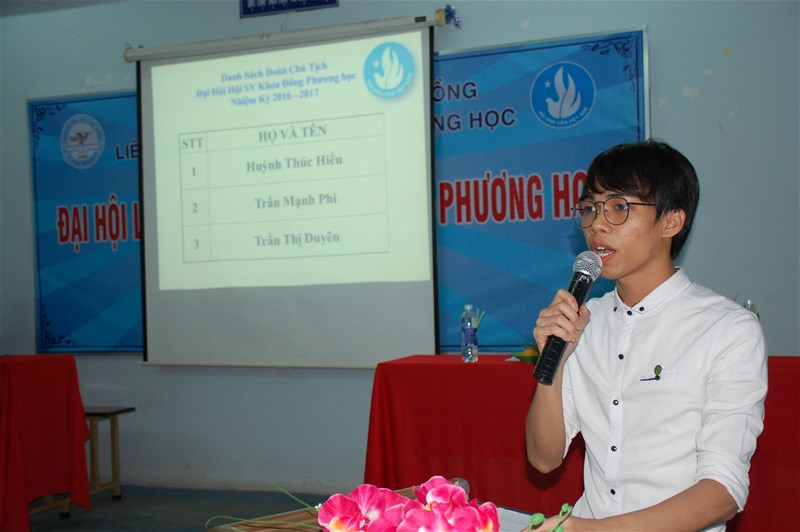 Đến tham dự đại hội, về phía phía Hội Sinh viên trường có đồng chí Huỳnh Thúc Hiếu – Phó Chủ tịch Hội Sinh viên trường, về phía BCH Đoàn khoa Đông Phương học có đồng chí Phan Thế Anh – Bí thư Đoàn Khoa, quý thầy cô là giảng viên trong Khoa, ngoài ra, còn có quý đại biểu khách mời là BCH Hội Sinh viên các khoa và các đồng chí là đại biểu từ các Chi hội cùng tham dự đại hội.