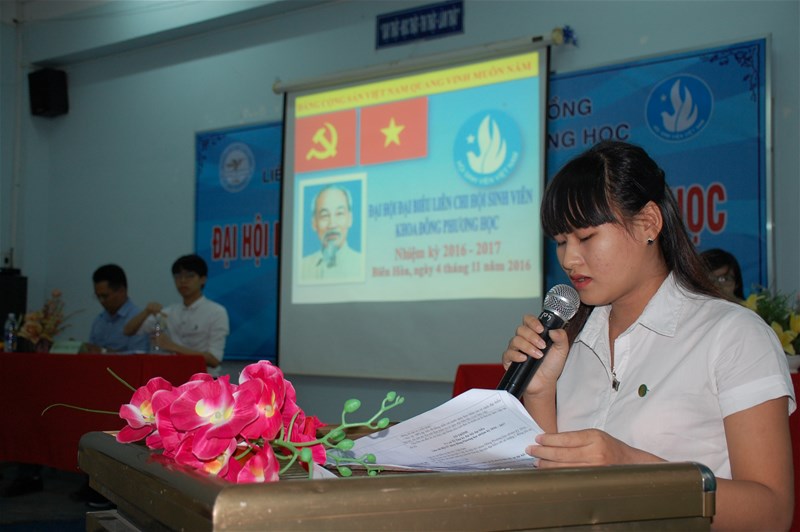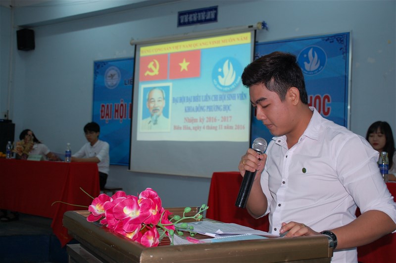 Được sự đồng ý của BCH Hội Sinh viên trường, Ban lãnh đạo Khoa, sự hướng dẫn của Ban Thư ký Hội Sinh viên trường, vào lúc 14 giờ 00, ngày 04/11/2016, tại phòng E105, cơ sở 3, Trường Đại học Lạc Hồng, Liên chi Hội Sinh viên  khoa Đông Phương học tổ chức Đại hội đại biểu Liên chi Hội Sinh viên khoa nhiệm kỳ 2016 - 2017.