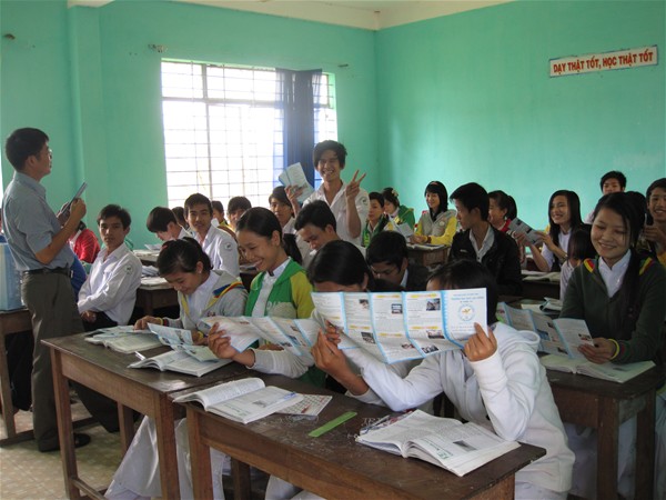 Chụp hình lưu niệm tại trường THPT Phạm Văn Đồng