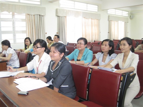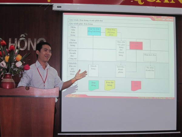 Sáng ngày 3/3/2011 tại phòng B203 Khoa Kế Toán – Kiểm Toán đã tiến hành báo cáo tiến độ Chuẩn bị nghiên cứu khoa học giáo viên. Tham gia nghiên cứu khoa học giáo viên lần 8 năm nay Khoa Kế Toán – Kiểm Toán có 8 đề tài nghiên cứu. Trong đó có 7 đề tài nghiên cứu về xây dựng qui trình kế toán ảo và 1 đề tài Đánh giá tình hình sử dụng phần mềm kế toán MISA SME.NET 2010 tại khoa Kế Toán – Kiểm Toán. Các đề tài lần lượt báo cáo tiến độ hoàn thành và các bước chuẩn bị nhằm hoàn thiện quy trình kế toán ảo. Chuẩn bị các chứng từ liên quan đến các quy trình, mỗi chứng từ chỉ cách nhận dạng và làm kế toán thủ công. (Chỉ ra cách lập và điều kiện để chấp nhận và có thể chỉ ra thời điểm lập (nếu có)). Từ đó, khi sinh viên thực hành trên máy sẽ nhập dữ liệu trên phần mêm excel. Sau đây là một số hình ảnh của buổi báo cáo Thầy Phan Thành Nam trình bày lưu đồ quy trình Kế toán bán hàng - nợ phải thu Các thầy cô theo dõi phần trình bày của các quy trình Kế toán ảo Các thầy cô đóng góp ý kiến cho từng quy trình Các thầy cô chăm chú theo dõi từng phần hành của quy trình