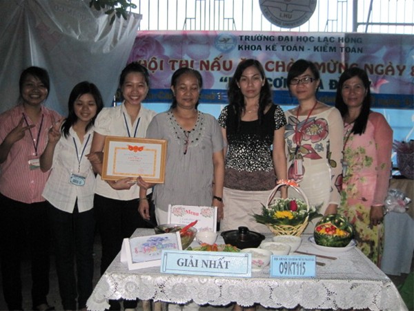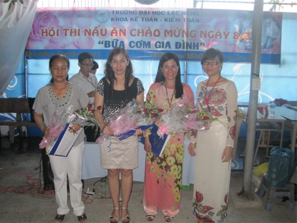 Nhằm chào mừng ngày Quốc tế Phụ nữ 08/03. Đoàn – Hội sinh viên khoa  Kế Toán - Kiểm Toán tổ chức cuộc thi nấu ăn với chủ đề “Bữa cơm gia đình”. Đây là cuộc thi được tổ chức hàng năm của Khoa Kế toán - kiểm toán nhằm tôn vinh và biết ơn những người phụ nữ, người mẹ, người chị đã ngày đêm đóng góp sức mình vào công cuộc xây dựng đất nước và cuộc sống gia đình, đặc biệt là những cô giáo đang ngày đêm cống hiến vì sự nghiêp giáo dục Nước nhà. Bên cạnh đó cuộc thi đã tạo một sân chơi lành mạnh cho các sinh viên và giúp cho các sinh viên có tinh thần đoàn kết hơn  sau những giờ học trên giảng đường. Cuộc thi năm nay thu hút 19 đội tham gia dự thi đến từ 19 chi đoàn trong Khoa. Đến dự với hội thi về phía Ban lãnh đạo Khoa có cô Trịnh Thị Huế – Phó trưởng Khoa Kế toán - Kiểm toán và tập thể giáo viên trong Khoa. Về phía Ban Giám Khảo có Cô Phạm Thị Kim Hồng – Giáo viên Trường PTTH Chuyên Lương Thế Vinh, cô Hồ Thị Hải Yến – Trương Ban Nữ công gia chánh Trường ĐH Lạc Hồng, Cô Vưu Thị Thu Thủy – Khoa Kế toán – Kiểm toán. Mặc dù trước khi bắt đầu Hội thi trời mưa rất to, nhưng không khí hào hứng của các đội tham gia Hội thi vẫn sôi nổi. Có những đội đã đến rất sớm để lo chuẩn bị phần thi của đội mình thật tốt. Hội thi đã diễn ra chậm hơn so với kế hoạch do trời gió và mưa rất to, nhưng tất cả các đội đã hoàn thành tốt phần thi của mình.