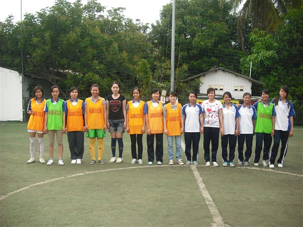 2 đội bóng nữ chụp hình lưu niệm trước khi thi đấu