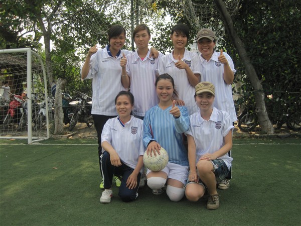 Các cầu thủ nữ xinh đẹp của lớp 08KT117 chụp hình lưu niệm trước khi bắt đầu trận đấu