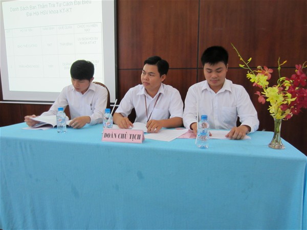 Đến tham dự Đại Hội có Đ/c Nguyễn Văn Dũng - Đại diện chi bộ 7, Đ/c Trần Hoàng Minh – Phó Chủ tịch Hội SV trường, Đ/c Phan Thành Nam – Bí thư Đoàn Khoa KT-KT, và đại diện Đoàn – Hội SV các khoa khác trong trường. Cùng 52 đại biểu được triệu tập tham dự Đại hội Hội SV Khoa KT-KT nhiệm kỳ 2011-2012. Đại hội đã tổng kết và kiểm điểm công tác hội SV khoa nhiệm kỳ 2010 – 2011, và đưa ra phương hướng cho hoạt động Hội Sv nhiệm kỳ 2011 – 2012. Đại Hội đã tiến hành hiệp thương dân chủ để bầu chọn ra 9 gương mặt vào BCH hội SV đủ năng lực và nhiệt huyết để lãnh đạo phong trào Hội sv Khoa KT-KT. Đại hội đã nhận được nhiều ý kiến tham luận để phong trào hội ngày càng phát triển. Đại hội đã diễn ra thành công tốt đẹp. Sau đây là một số hình ảnh về Đại hội Hội SV Khoa KT-KT: