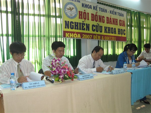 Thực hiện theo kế hoạch tổ chức Hội nghị nghiên cứu khoa học sinh viên của Trường, ngày 07/12/2011 Khoa Kế toán – Kiểm toán thành lập Hội đồng đánh giá các đề tài NCKH sinh viên để đánh giá các đề tài khóa 07 Đêm & 08KT201. Trong đợt báo cáo này có 39 đề tài đủ các điều kiện theo quy định được phép báo cáo trước Hội đồng đánh giá NCKH Khoa.