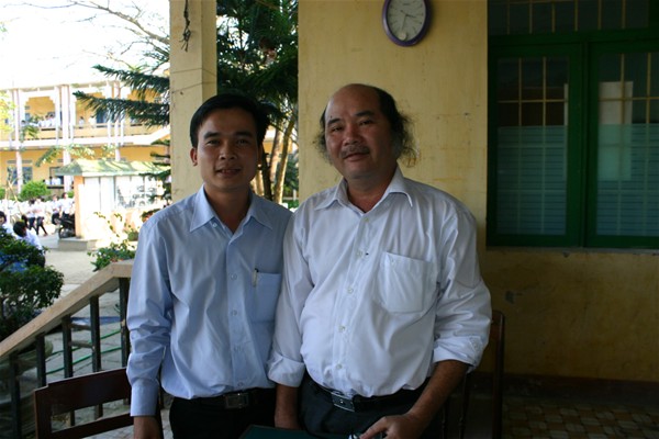 Thầy Nguyễn Việt Hùng và thầy Lê Phương Trường chụp hình lưu niệm với