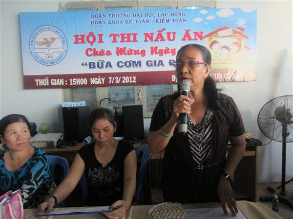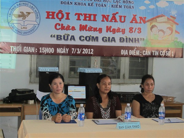 Về phía Ban Giám Khảo có Cô Phạm Thị Kim Hồng – Giáo viên Trường PTTH Chuyên Lương Thế Vinh, cô Hồ Thị Hải Yến – Trương Ban Nữ công gia chánh Trường ĐH Lạc Hồng, Cô Vưu Thị Thu Thủy – Khoa Kế toán – Kiểm toán.