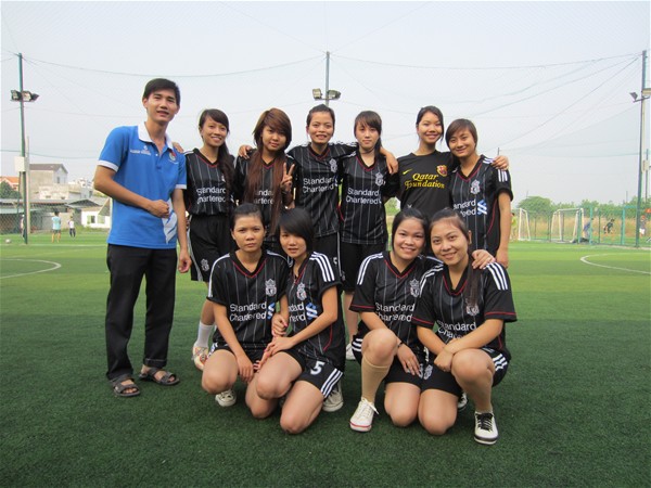 Cầu thủ nữ 10KT117 chụp hình lưu niệm