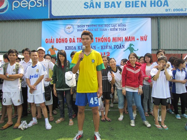 Sáng ngày 28/03/2012, tại sân bóng đá A42 - Sân bay Biên Hòa, Đoàn - Hội SV Khoa Kế toán - Kiểm toán đã long trọng tổ chức lễ buổi khai mạc giải bóng đá mini Nam – Nữ Khoa Kế Toán – Kiểm Toán năm 2012. Đến tham dự lễ khai mạc có Thầy Nguyễn Văn Dũng – Khoa Kế Toán – Kiểm Toán, Cô Trần Thị Hiền - Khoa Kế Toán – Kiểm Toán, cùng toàn thể các VĐV đến từ 20 đội bóng Nam – 22 đội bóng nữ đại diện cho 24 lớp của khoa KT-KT.