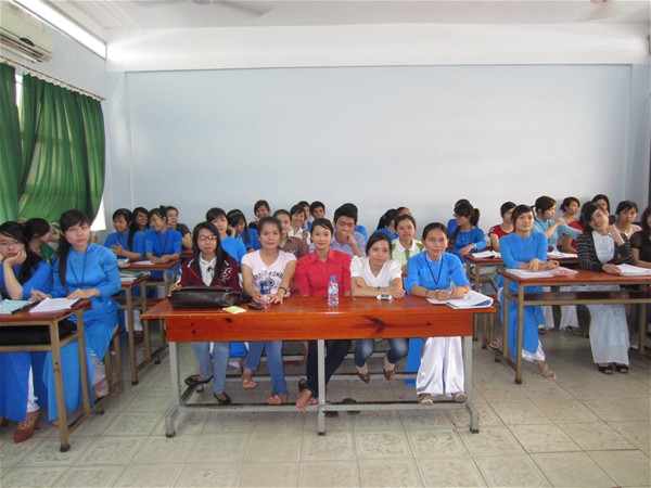 Sinh viên đến tham dự buổi báo cáo buổi chiều