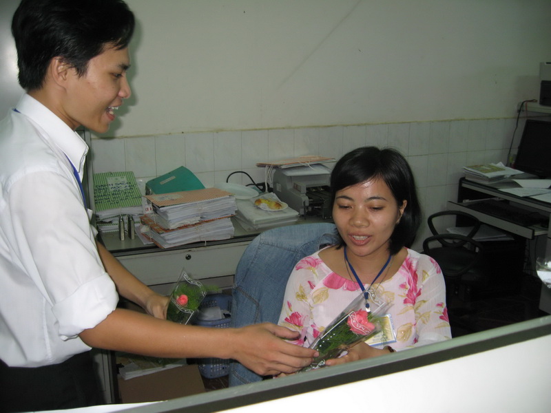 Tặng hoa cho các cô ở Phòng Tài Vụ