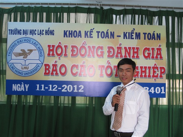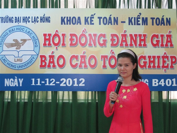 Sáng ngày 11/12/2012, Khoa Kế Toán – Kiểm Toán tổ chức Báo cáo tốt nghiệp cho Khóa 2008 Đêm & 2009 Liên thông hoàn thành quá trình thực tập tốt nghiệp. Do trường Đại Học Lạc Hồng nằm ở vị trí thuận lợi, có hơn 70 khu công nghiệp xung quanh. Nên sinh viên có nhiều điều kiện để tiếp xúc thực tế môi trường làm việc thực tế và áp dụng kiến thức học được tại trường vào công việc tại công ty đi thực tập tốt nghiệp. Sau thời gian 5 tháng thực tập tốt nghiệp tại các doanh nghiệp sinh viên hoàn thành quá trình thực tập tốt nghiệp đã báo cáo trước Hội đồng đánh giá báo cáo tốt nghiệp.