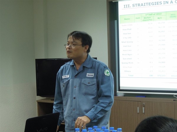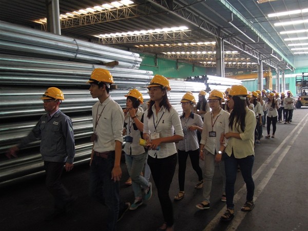 Tại Công Ty, sinh viên đã được Ông Trần Tấn Phát – Trưởng Phòng Hành Chánh – Nhân Sự giới thiệu lịch sử hình thành, các chế độ chính sách tại công ty. Ông Hồ Văn Lý – Giám Đốc Khối Sản Xuất hướng dẫn quy trình công nghệ cao về sản xuất sản phẩm thép chuyên dụng.
