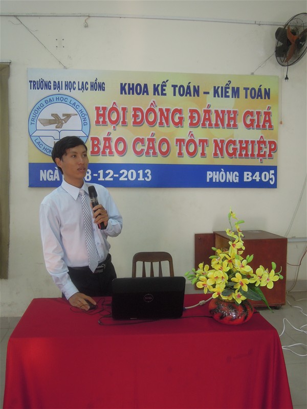 Sáng ngày 08/12/2013, Khoa Kế Toán – Kiểm Toán tổ chức Báo cáo tốt nghiệp cho Khóa 2009 Đêm, 12KT201 và SV thực tập lại hoàn thành quá trình thực tập tốt nghiệp. Do trường Đại Học Lạc Hồng nằm ở vị trí thuận lợi, có hơn 70 khu công nghiệp xung quanh. Nên sinh viên có nhiều điều kiện để tiếp xúc thực tế môi trường làm việc thực tế và áp dụng kiến thức học được tại trường vào công việc tại công ty đi thực tập tốt nghiệp. Sau thời gian 5 tháng thực tập tốt nghiệp tại các doanh nghiệp sinh viên hoàn thành quá trình thực tập tốt nghiệp đã báo cáo trước Hội đồng đánh giá báo cáo tốt nghiệp.