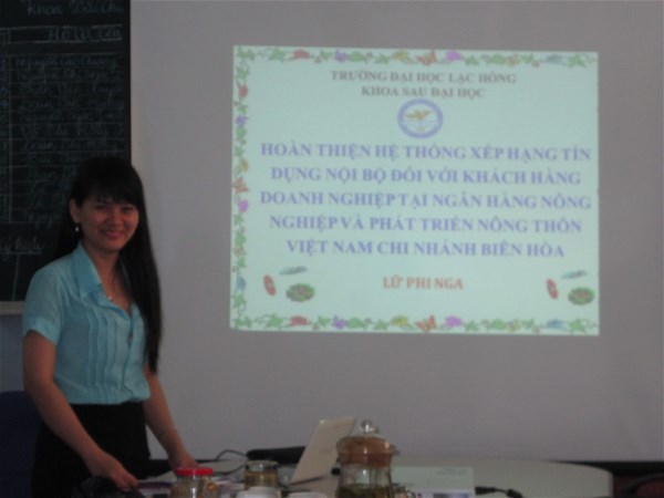 Qua buổi sinh hoạt chuyên môn cô Lữ Phi Nga đã giới thiệu đến tất cả giảng viên của khoa Tài chính – Kế toán trường Đại học Lạc Hồng một số vấn đề cơ bản về xếp hạng tín dụng doanh nghiệp và thực trạng xếp hạng tín dụng đối với khách hàng doanh nghiệpcủa ngân hàng trong những năm gần đây. Qua đó đề xuất một số giải pháp góp phần hoàn thiện hệ thống xếp hạng tín dụng nội bộ đối với khách hàng doanh nghiệp của ngân hàng Nông Nghiệp Và Phát Triển Nông Thôn Việt Nam chi nhánh Biên Hòa. Từ đó giúp cho ngân hàng có thể chọn được những khách hàng doanh nghiệp tốt để cấp tín dụng, hạn chế phát sinh nợ xấu.