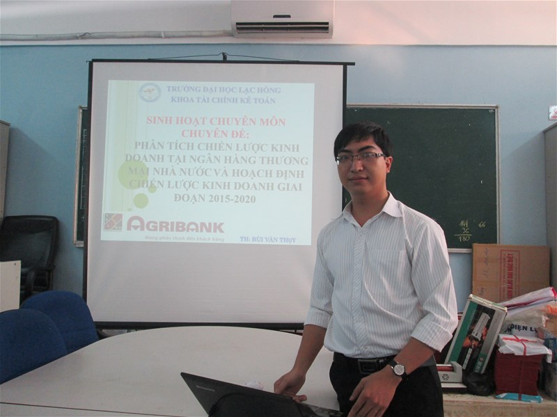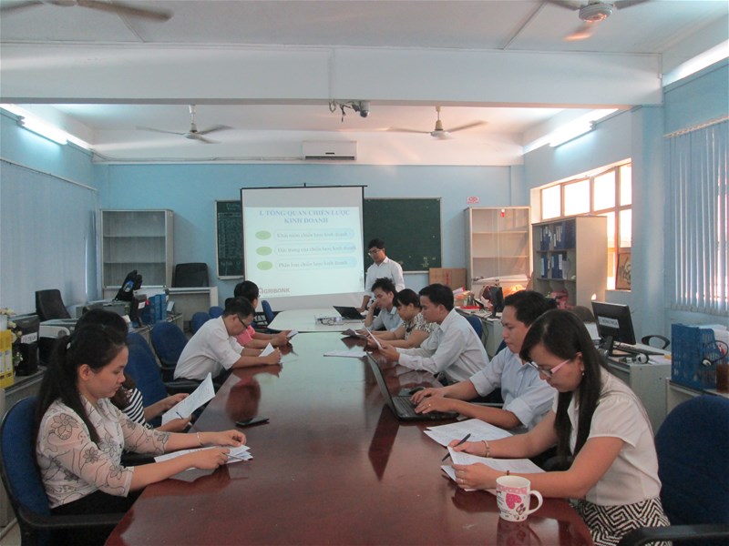 Tại buổi sinh hoạt chuyên môn, thầy Bùi Văn Thụy đã trình bày những vấn đề về chiến lược kinh doanh, và những hoạch định chiến lược kinh doanh tại ngân hàng thương mại nhà nước trong giai đoạn 2015 - 2020. Qua đó nhằm giúp cho các giảng viên có thêm được những kiến thức bổ ích trong lĩnh vực ngân hàng. Buổi sinh hoạt cũng đã được các giảng viên đóng góp, chia sẽ những ý kiến nhằm giúp các giảng viên hiểu rõ và trau dồi kiến thức.