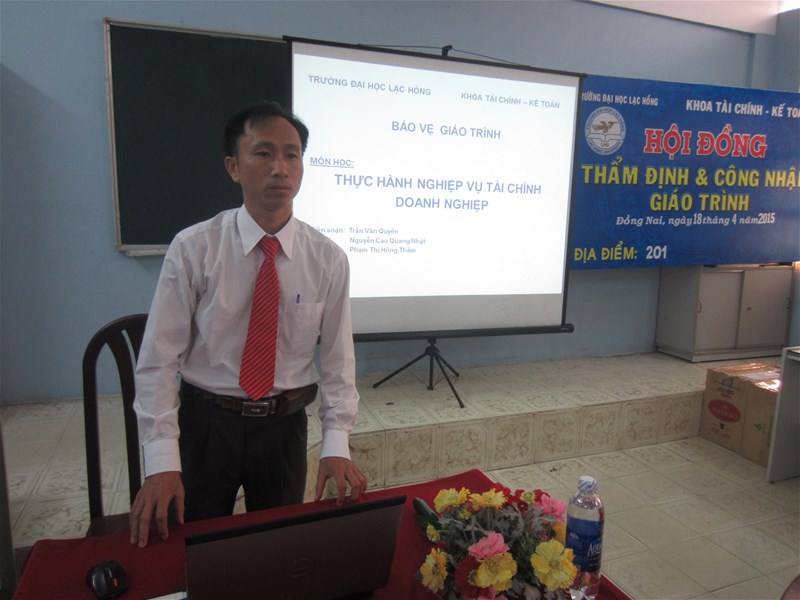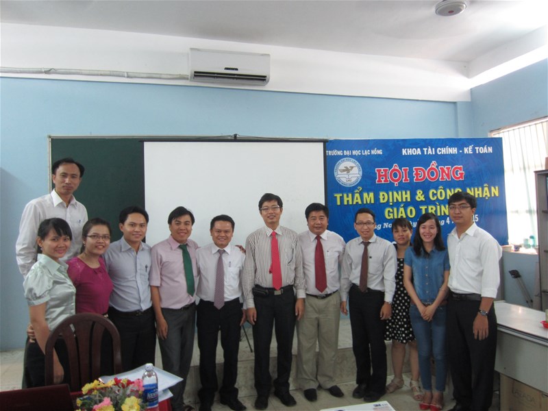 - Ngày 18/04/2015, tại phòng B201 cơ sở 1 Trường Đại học Lạc Hồng khoa Tài chính - Kế toán tổ chức thẩm định cho các giáo trình của khoa đăng ký trong tháng 02/2015. Tại buổi làm việc hội đồng đã nhận xét và đóng góp chân thành cho từng giáo trình, chỉ ra những điểm còn chưa hợp lý để tác giả chỉnh sửa lại cho hoàn thiện. Hội đồng đã làm việc hết sức nghiêm túc và buổi báo cáo diễn ra theo đúng quy định.