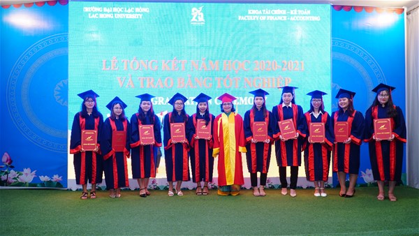 Ngày 15 tháng 05 năm 2022, Khoa Tài chính – Kế toán tổ chức lễ Tổng kết năm học 2020 – 2021 và Trao bằng tốt nghiệp tại Hội Quán Trấn Biên. Đến dự buổi lễ, về phía Ban Giám hiệu Nhà trường có Cô NGƯT. TS Nguyễn Thị Thu Lan – Phó hiệu trưởng,  Thầy PGS.TS. Nguyễn Thanh Lâm – Phó hiệu trưởng, Thầy Đỗ Khôi Nguyên - Phó Hiệu trưởng nhà trường; lãnh đạo các khoa, phòng, ban, trung tâm trong trường. Về phía khách mời có đại diện lãnh đạo các doanh nghiệp, các giảng viên thỉnh giảng. Về phía khoa Tài chính - Kế toán, có Thầy TS. Nguyễn Quốc Huy - Trưởng khoa, Thầy TS. Nguyễn Văn Hải – Phó trưởng khoa và cùng toàn thể cán bộ, giảng viên, nhân viên Khoa. Đặc biệt trong buổi lễ có sự hiện diện của 87 tân cử nhân cùng quý vị phụ huynh đi cùng.
