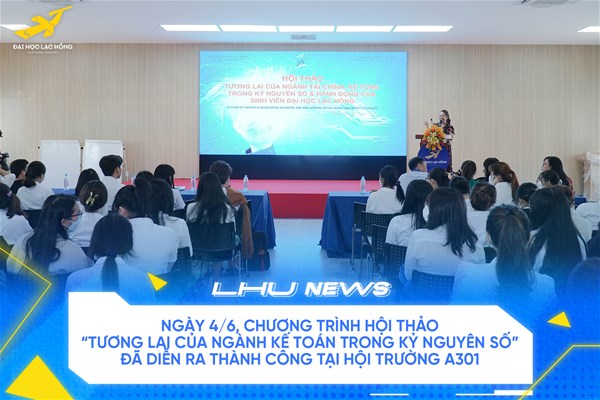 Nhằm chuẩn bị hành trang, cũng như chia sẻ cơ hội nghề nghiệp trong kỷ nguyên số cho các bạn sinh viên ngành Tài chính - Kế toán trên hành trình chinh phục nghề nghiệp trong tương lai. Sáng ngày 04 tháng 6 năm 2022, Khoa tổ chức buổi hội thảo chuyên đề “Tương lai của ngành tài chính, kế toán trong kỷ nguyên số & hành động của sinh viên Đại học Lạc Hồng tại Hội trường A301.