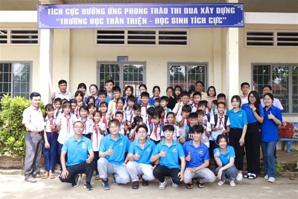 Chuyến đi vừa mang tinh thần hỗ trợ trường thêm các trang thiết bị học tập, đồng thời thăm lại trường xưa nơi các thầy cô đã từng gắn bó mùa hè xanh ở đây. Cảm nhận đầu tiên khi tới trường là sự hân hoan, háo hức của các em nhỏ. Dường như trong ánh mắt các em phấn khởi hẳn lên khi thấy các anh chị tới trường. Vì đường xa, nên khi tới trường đã hơn 11h30, quá giờ học nhưng các em vẫn nán ở lại đợi đoàn tới, nên ai cũng cảm thấy vui, bao mệt mỏi cũng vụt tan.