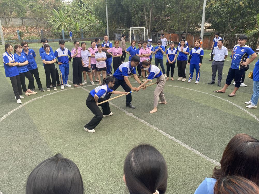 Sinh viên tham gia môn đẩy gậy
