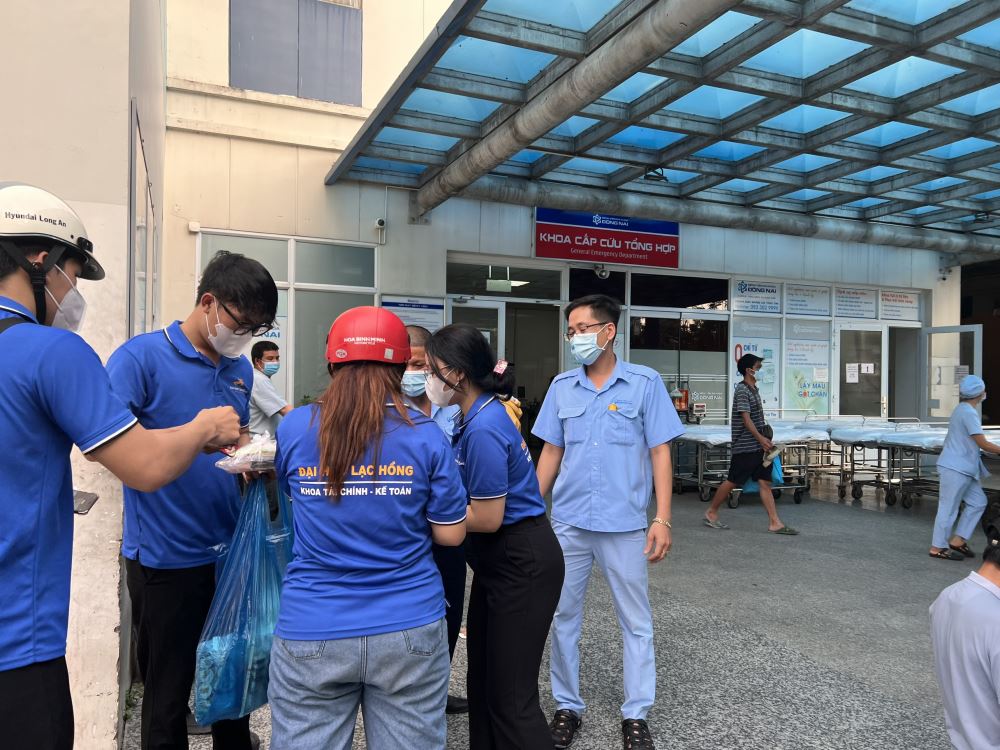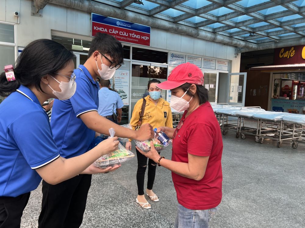 Sau khi hoàn thành xong 80 phần đồ ăn gồm cơm cuộn, nước và sữa. Các thành viên trong nhóm đã tự tay mang lên Bệnh viện Đa Khoa Đồng Nai và thực hiện nhiệm vụ của mình. Nhìn những gương mặt rạng rỡ của các cô chú bệnh nhân và cô chú lao động khi nhận những phần cơm, các bạn sinh viên trong nhóm ai nấy đều cảm thấy vui vẻ và tự hào vì hành động nhỏ ý nghĩa này của mình.