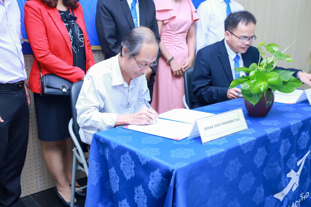 Tham dự lễ ký kết có sự hiện diện của PGS. TS Nguyễn Thanh Lâm – Phó hiệu trưởng nhà trường, TS. Nguyễn Văn Hải – Phó trưởng khoa Tài chính – Kế toán, cùng đại diện phòng ban, giảng viên. Về phía Hội Kế toán tỉnh Đồng Nai có sự hiện diện của ông Quách Ân Điển – Phó chủ tịch Hội, cùng ông bà đại diện đi cùng.