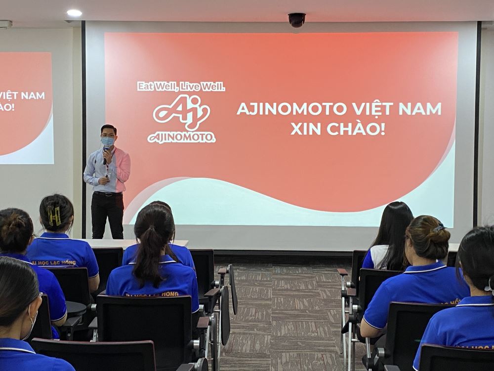 Sau buổi tham quan nhà máy, giảng viên và sinh viên được thư giãn với mini game, trải nghiệm làm đầu bếp  Ajinomoto và trao đổi  trực tiếp về cơ hội nghề nghiệp tại công ty.