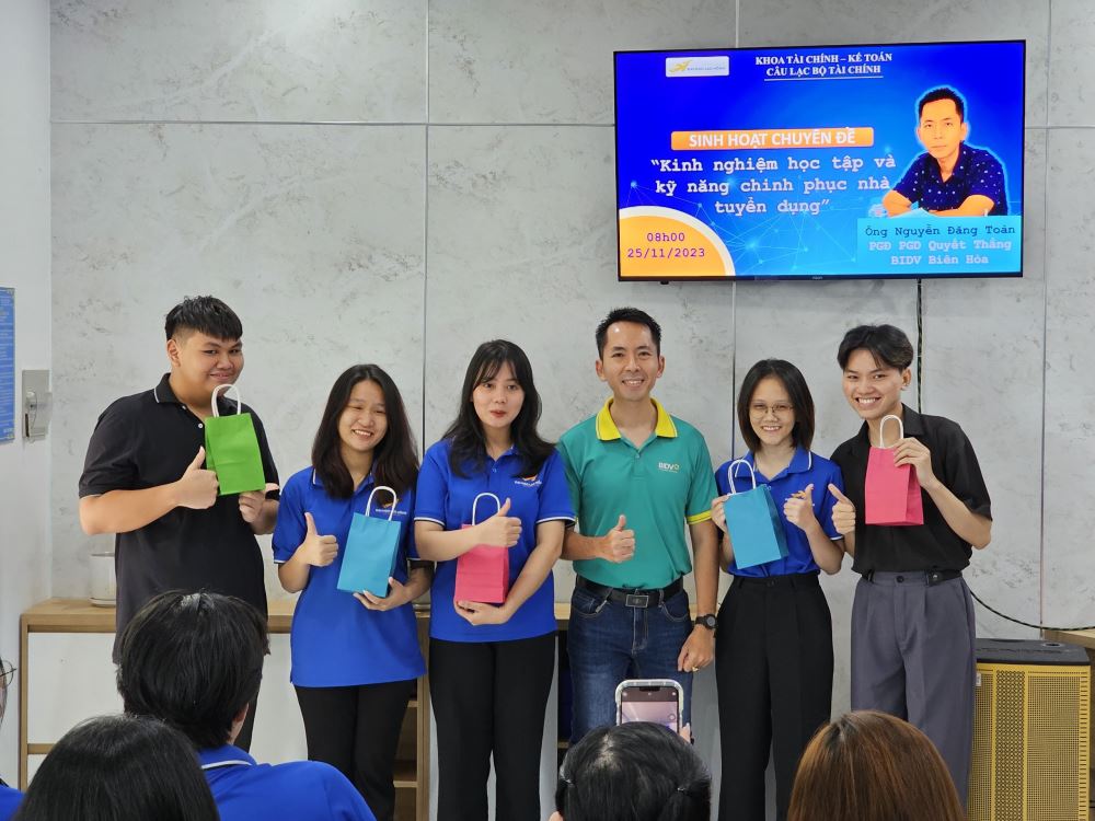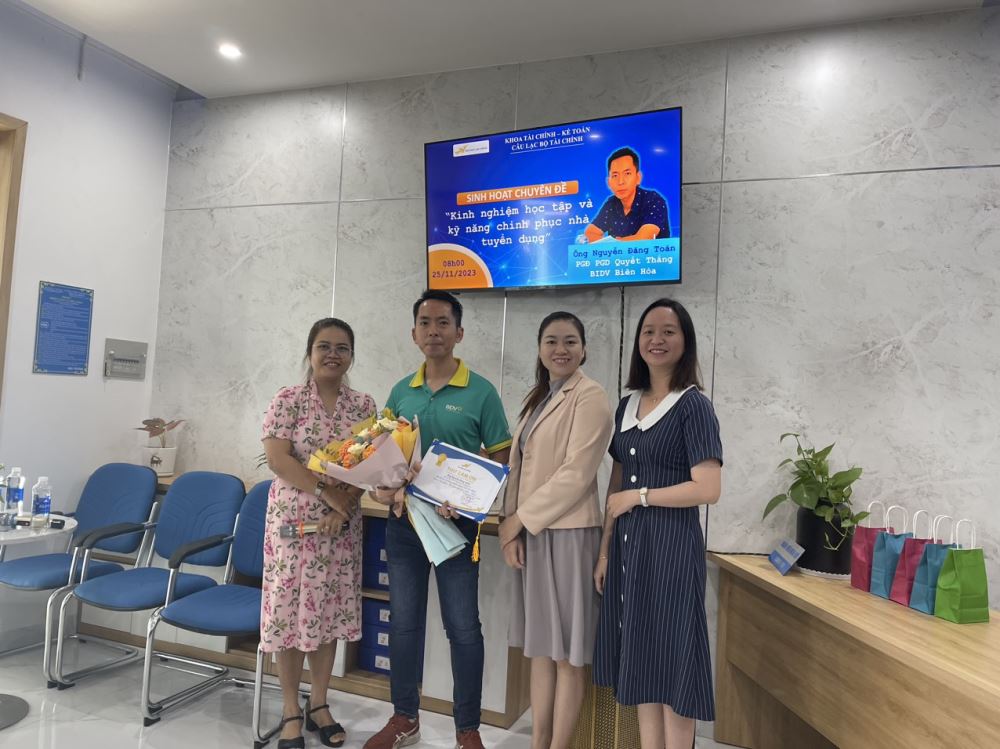 Ngày 25/11/2023, CLB Tài chính, Khoa Tài chính - Kế toán tổ chức sinh hoạt lần 2. Buổi sinh hoạt thu hút sự chú ý đặc biệt với sự hiện diện của diễn giả Ông Nguyễn Đăng Toản, Phó Giám đốc PGD Quyết Thắng BIDV Biên Hoà.