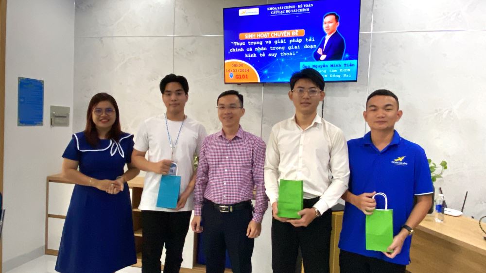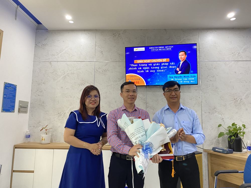 Sáng ngày 16/3/2024, Khoa Tài Chính – Kế Toán đã tổ chức một buổi sinh hoạt câu lạc bộ Tài Chính, với sự tham gia của Ông Nguyễn Minh Tiến, Giám đốc Trung tâm Kinh doanh Ngân hàng Xây dựng – Chi nhánh Đồng Nai, Phó Giám đốc Công ty TNHH TV ĐT Finance Vision. Buổi sinh hoạt với chủ đề “Thực trạng và Giải pháp tài chính cá nhân trong giai đoạn kinh tế suy thoái”.