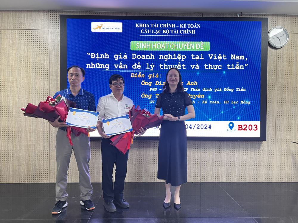 Buổi sinh hoạt này đã có sự tham gia của hai diễn giả uy tín là Ông Đinh Đức Anh, Phó Giám đốc của Công ty Cổ phần Thẩm Định giá Đồng Tiến, một chuyên gia hàng đầu trong lĩnh vực thẩm định giá. Ông Trần Văn Quyền, giảng viên Khoa Tài chính - Kế toán, cũng đã chia sẻ những kiến thức sâu sắc về đề tài này.