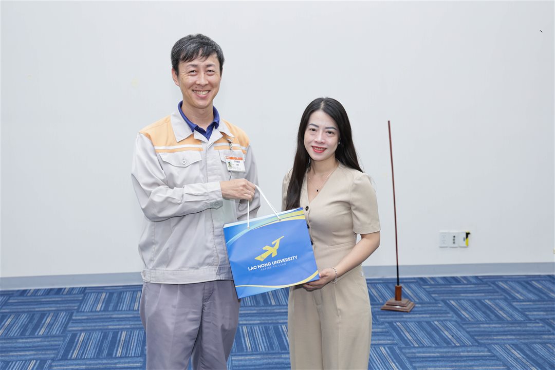 Kết thúc chuyến tham quan, đại diện Khoa Tài chính – Kế toán đã gửi lời cảm ơn và quà lưu niệm đến Ban lãnh đạo Công ty Lixil Việt Nam vì sự hợp tác và hỗ trợ trong hoạt động đào tạo, đồng thời chụp ảnh lưu niệm ghi lại những khoảnh khắc ý nghĩa.