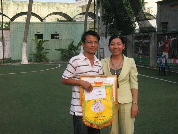 Cô Võ Hồng Gấm trao giải thưởng và cúp vô địch cho đội 09KT114