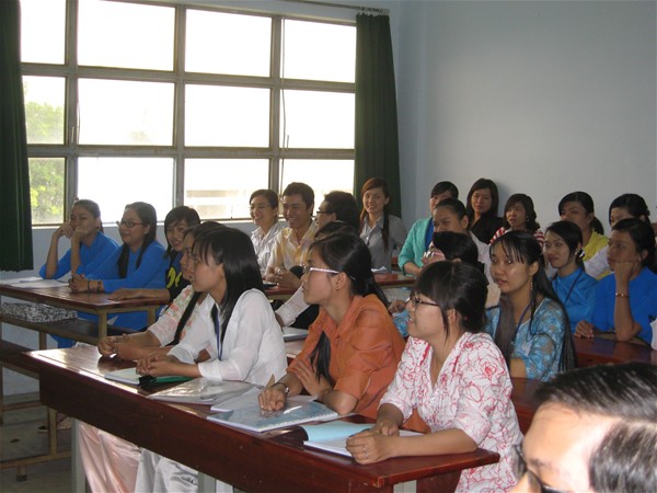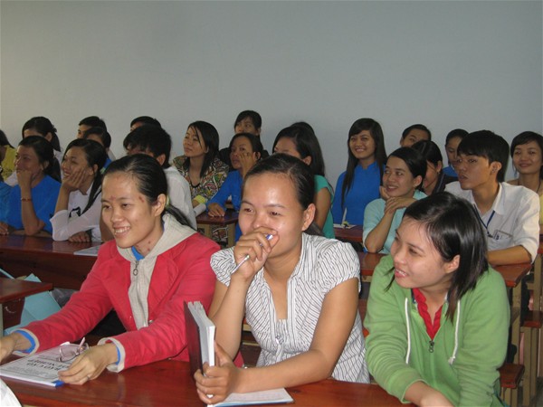 Nhiều Sv tham gia báo cáo đang chăm chú theo dõi buổi báo cáo lao động thực tế
