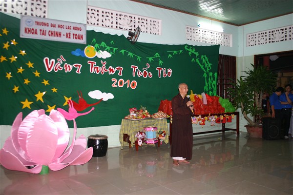 Mở màn chương trình là tiết mục múa gọi trăng, của các tiên nữ. Sau khi sư thầy trụ trì Tu viện An Lạc Hạnh, châm nến đốt đèn khai mạc chương trình. Các bé đã được xem màn múa lân đặc sắc. Tiếp theo các bé được xem nhiều tiết mục văn nghệ do các anh chị đến từ khoa Kế Toán – Kiểm Toán và Tài Chính – Ngân Hàng biểu diễn. Ngoài ra còn có các tiết mục hát múa dí dỏm do các bạn nhỏ ở Tu viện An Lạc Hạnh biểu diễn.