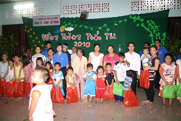 Ngày 20/09/2010 BCH Đoàn – Hội SV Khoa Tài Chính – Kế Toán đã tổ chức thành công Chương trình “Vầng trăng tuổi thơ - 2010” đã đem đến cho các trẻ em mồ côi khuyết tật và có hoàn cảnh khó khăn Tu viện An Lạc Hạnh – Xã An Phước – Long Thành – Đồng Nai, những phần quà thật ý nghĩa thiết thực. Đó là những món quà mang lại hơi ấm của ngày lễ trung thu, những chiếc bánh, chiếc đèn ông sao, những quyển tập…. giúp các em bớt đi phần nào những mất mát, thiếu thốn. Chương trình diễn ra hết sức thành công. Đã mang lại một ngày tết trung thu thật vui và ý nghĩa tới các em nơi đây, đồng thời cũng giúp các bạn tình nguyện viên của chương trình đồng cảm và chia sẻ với những hoàn cảnh khó khăn. Ban tổ chức cũng rất vui khi được làm chiếc cầu nối, giữa các nhà hảo tâm tới các hoàn cảnh khó khăn nói chung và các em mồ côi nói riêng tại Tu viện An Lạc Hạnh – Xã An Phước – Long Thành – Đồng Nai.