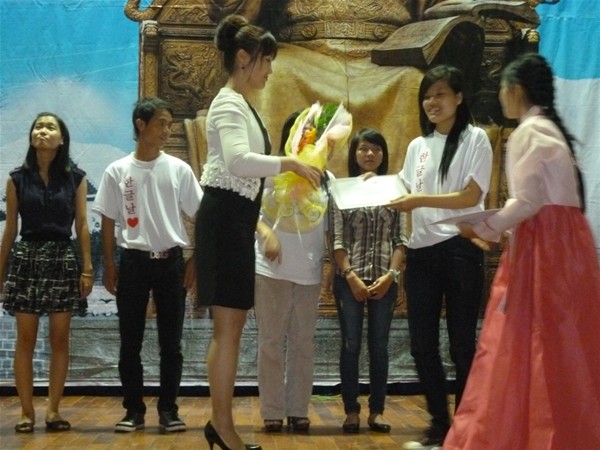 Sinh viên ngành Hàn Quốc, khoa Đông Phương, trường Đại học Lạc Hồng tại buổi lễ trao giải thưởng: