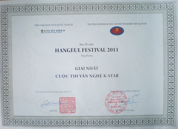 Ngày 30-10-2011, hơn 100 sinh viên ngành Hàn Quốc - Khoa Đông phương đã tham dự Ngày hội chữ viết Korea tại trường Đại học Khoa học Xã hội & Nhân văn do Viện Văn hóa Hàn Quốc TP. HCM tổ chức đã đã thu hút gần 1000 sinh viên đến từ 9 trường đại học, cao đẳng ở khu vực phía Nam có sinh viên ngành Hàn theo học. Ngày hội nhằm kỷ niệm 565 năm ngày chữ viết Hangeul được ban hành, tạo sân chơi kết nối giao lưu giữa các cở sở đào tạo tiếng Hàn và tăng cường quan hệ hợp tác hữu nghị Việt – Hàn.