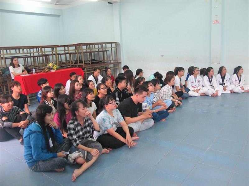 Nội dung trọng tâm của chương trình là phần trải nghiệm Taekwondo dưới sự huấn luyện và chỉ dẫn của các võ sư Hàn Quốc. Các bạn sinh viên đã được chỉ dạy về các tư thế và kỹ năng cơ bản của môn võ Taekwondo. Đồng thời, các võ sư đã hướng dẫn cho sinh viên một số kỹ năng hóa giải các đòn thế tấn công khi gặp phải nguy hiểm như lúc gặp trộm cướp đe dọa, bị người xấu tấn công, bị ôm chặt từ phía sau…. Theo lời các võ sư “Học võ trước hết tăng cường sức khỏe, bảo vệ bản thân mình trước người xấu, sau nữa là có thể giúp đỡ người gặp hoạn nạn chứ không phải học võ để ra vẻ ta đây, thể hiện cái tôi bản thân mình”.