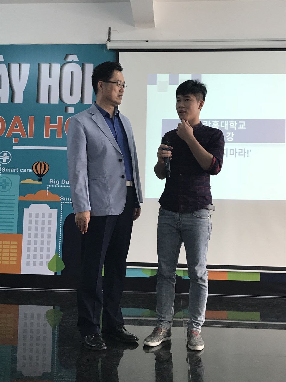 Ngoài ra, ứng viên cần tự tin thể hiện quan điểm của mình, có thể đặt những câu hỏi ý nghĩa với nhà tuyển dụng và cuối cùng, khi bạn được nhận vào làm việc hay không thì kết thúc buổi phỏng vấn vẫn phải vui vẻ và cảm ơn nhà tuyển dụng vì cho mình cơ hội được phỏng vấn.Bên cạnh việc chia sẻ kinh nghiệm phỏng vấn, Giáo sư Kim và Mr Chu còn trao đổi với các bạn sinh viên năm 4 chuẩn bị bước vào quá trình thực tập với những lời chỉ bảo chân tình như: