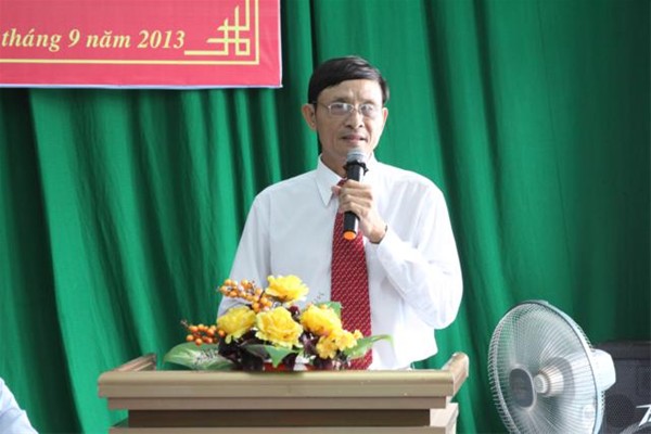 Hình 2: Đồng chí Nguyễn Trùng Phương- Bí thư Đảng ủy nhà trường trình bày báo cáo
